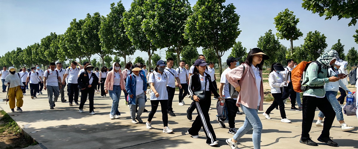 到達(dá)景區(qū)停車場,按照預(yù)定計(jì)劃展開“一圈到底”游戲。各組選派15人在指定位置列隊(duì),小組成員手牽手,一字排開,待接到游戲開始的指令后,各小組同時(shí)傳遞“呼啦圈”。由第一名成員開始傳遞并鉆圈,直至最后一名成員。要求在傳遞過程中不得出現(xiàn)掉圈,松開手等現(xiàn)象。出現(xiàn)掉圈則從第一名成員重新開始第二次傳遞,游戲時(shí)間連續(xù)計(jì)時(shí)打分。經(jīng)過激烈角逐,第二組獲得了第一名的好成績。